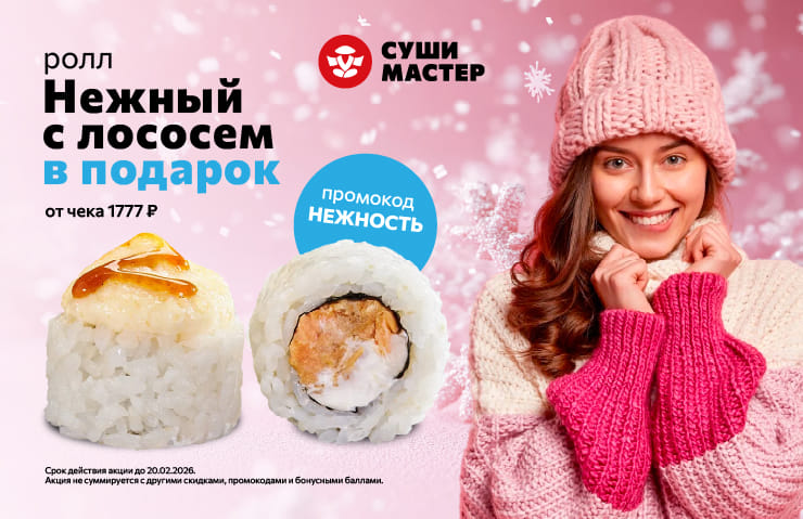 Ролл Нежный с лососем в подарок по промокоду: НЕЖНОСТЬ