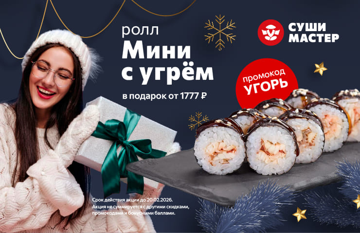 Дарим ролл Мини с угрем по промокоду: УГОРЬ